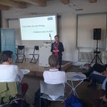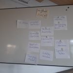 Nach einer Stärkung mit Kaffee und Kuchen, bei der im Foyer des Stadthauptmannshofes weiterdiskutiert wurde, und einem Vortrag von Gesa Retzlaff, Leitern des Niederdeutschzentrums Slewsig, über die Arbeit des Zentrums in Leck und dessen Förderverein wurde in der zweiten Diskussionsrunde ein Blick in die Zukunft geworfen: „Plattdüütsch 2030“. Die hier von den Teilnehmer*innen entworfenen, sehr positiven Zukunftsszenarien sahen eine zentrale Mediathek für plattdeutsche Inhalte, eine professionelle Werbekampagne für Platt, einen regionsübergreifenden Veranstaltungskalender, eine plattdeutsche multimediale Wanderausstellung für Schulen, das plattdeutsche Abitur, mehr plattdeutsche Filme und vieles andere vor. Wer sich für ein genaueres Protokoll der Veranstaltung und der dort besprochenen Themen interessiert, wird es in den nächsten Tagen auf der Webseite des Niederdeutschzentrums Holstein finden.